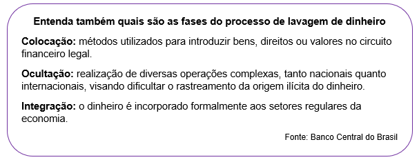 É por meio desta estrutura, portanto, que o país desenvolve os procedimentos de prevenção e combate à lavagem de dinheiro e ao financiamento do terrorismo.